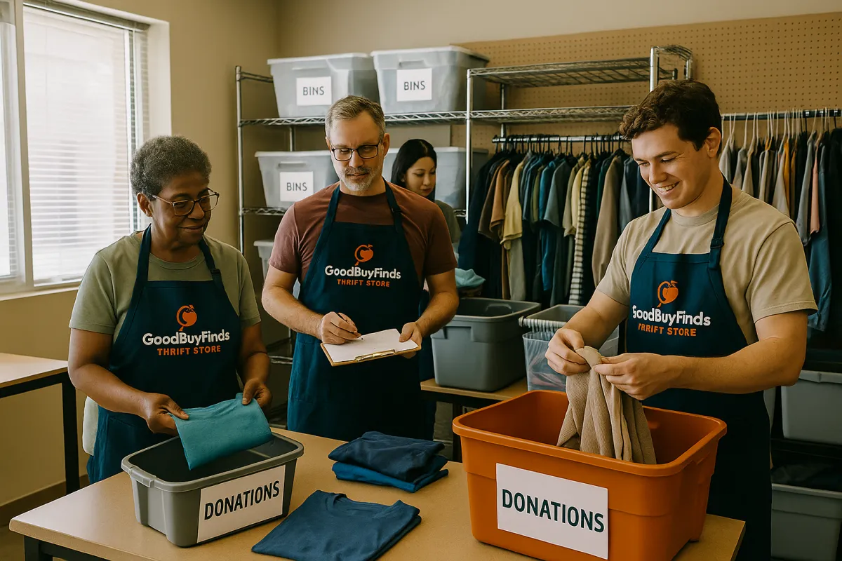 GoodBuyFinds is powered by neighbors, donors, church partners, business leaders, and volunteers. We're all connected by one mission: to create a place where thrift becomes transformation — both for people and the planet.